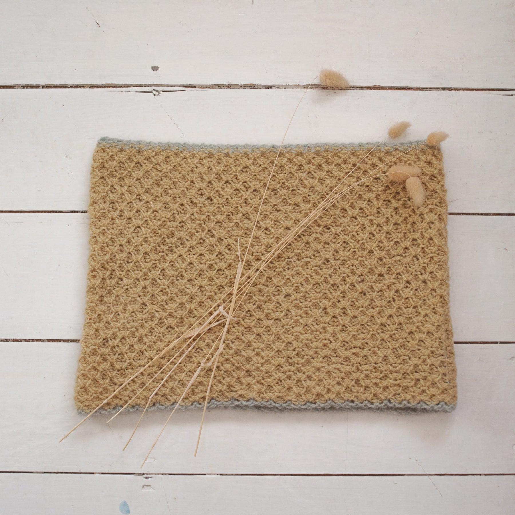 Knit with our signature two stitches, the Honeycomb and the Rib, all of our accessories are also trimmed with a complementary colour.